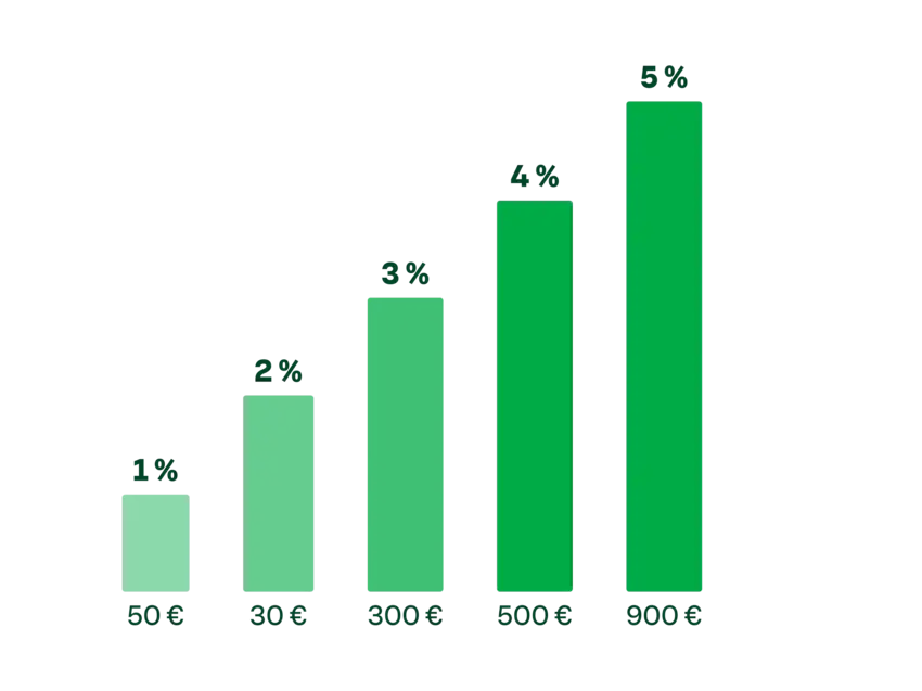 Bonus maksetaan S-Pankin tilillesi joka kuukauden 10. päivä. Mitä enemmän asioit, sitä suurempi prosentti.