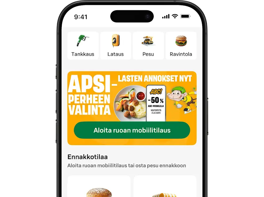 Autoilijan sovellus tankkaukseen, autopesuun ja ravintolapalveluihin tien päällä.