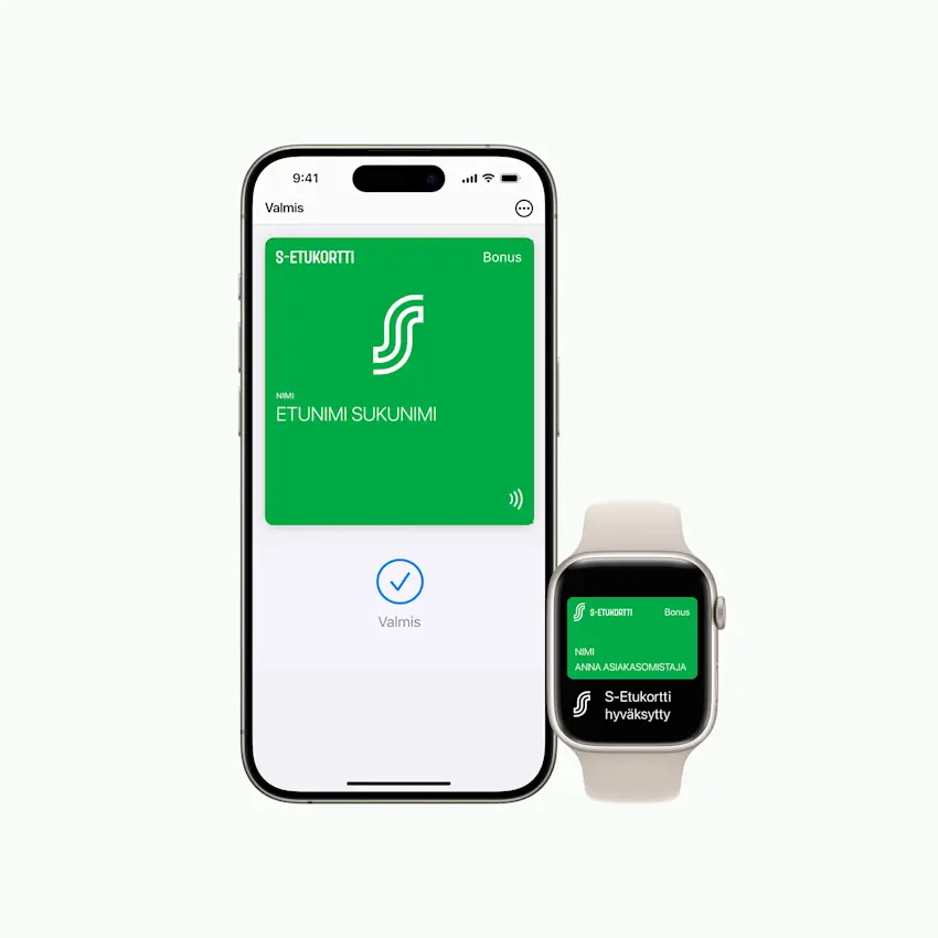 Käyttöönotto: Lisää S-Etukortti Applen Lompakkoon S-mobiilin kautta. Lue käyttöönotto-ohjeet