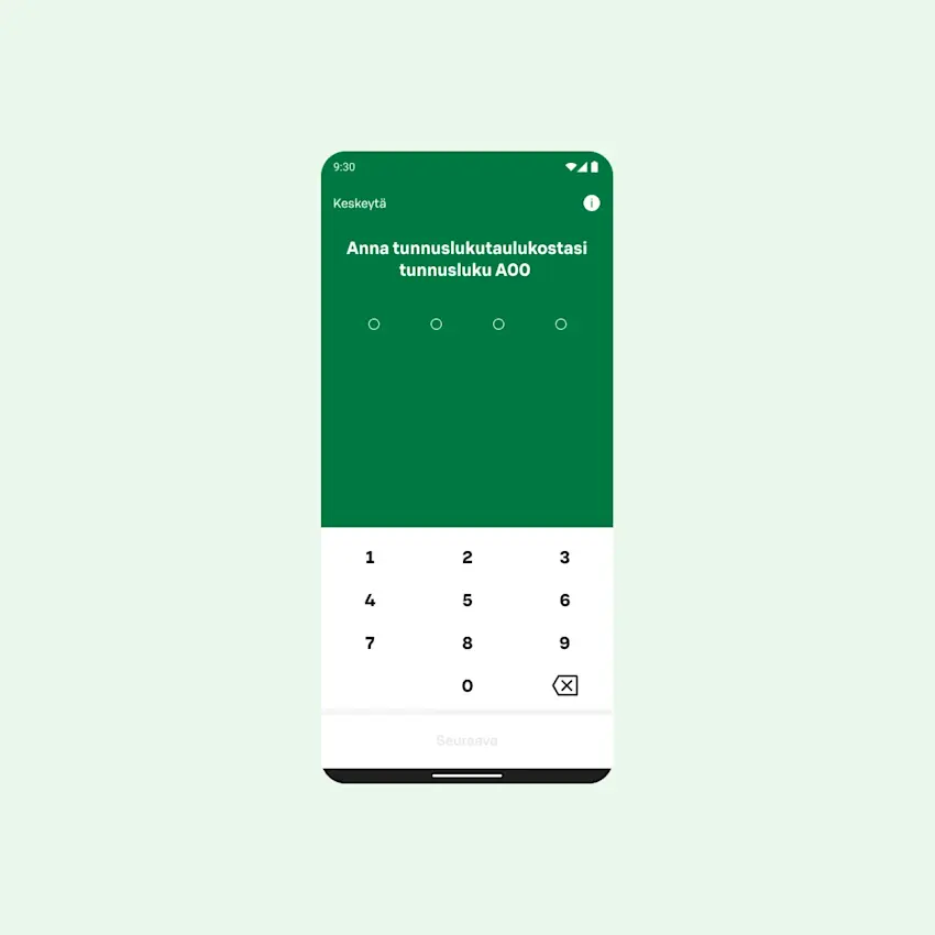 - Käytä S-Pankin antamaa tunnuslukutaulukkoa.